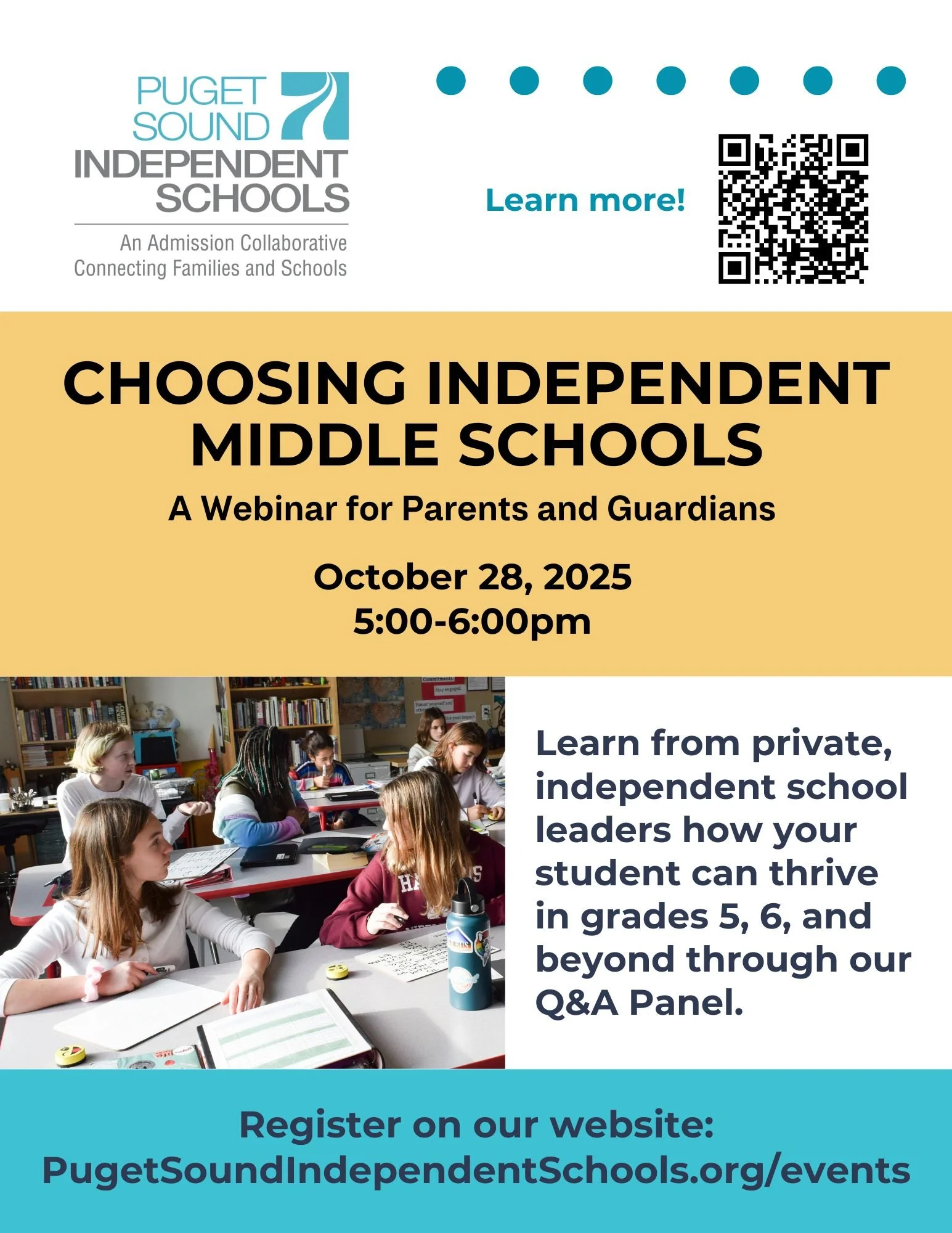Help your student make the transition into middle school! Learn from private, independent school leaders throughout our region about the uniquely challenging and supportive environments of their middle schools. This hour-long webinar for parents & guardians will provide space for your questions and the opportunity to hear from others in our Q&A session.